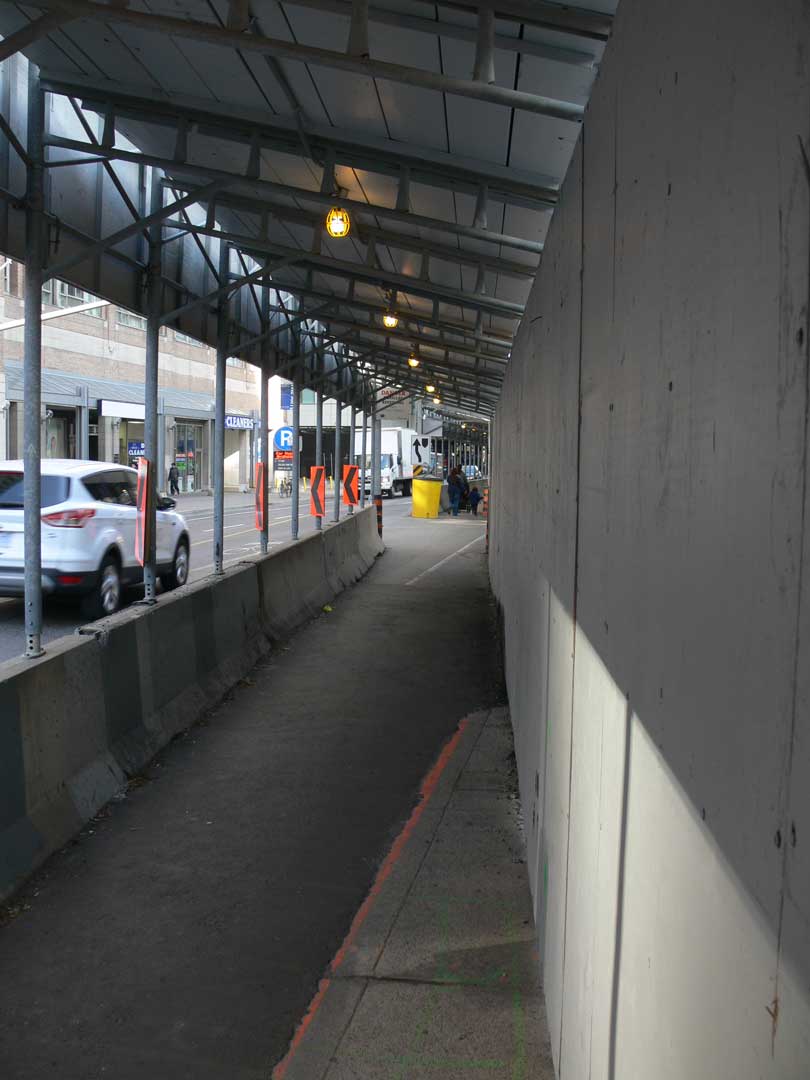 Our innovative Covered Walkway modular system is designed to provide outstanding overhead protection around construction sites. Post assembly RT3 is added to our plywood hoarding post sleeves, its modular characteristics enable creative flexibility during structure assembly. Steel protective barriers are used to give rigidity to the structure.